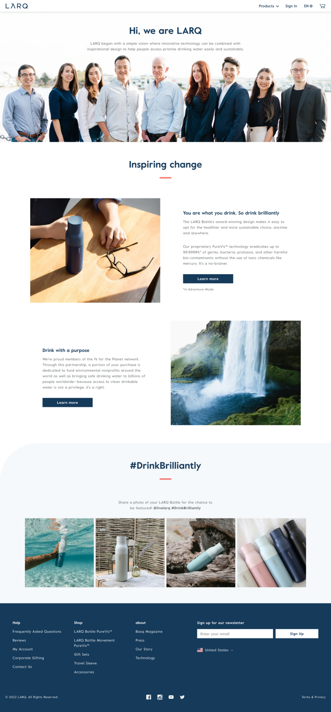 LARQ began with a simple vision where innovative technology can be combined with inspirational design to help people access pristine drinking water easily and sustainably.